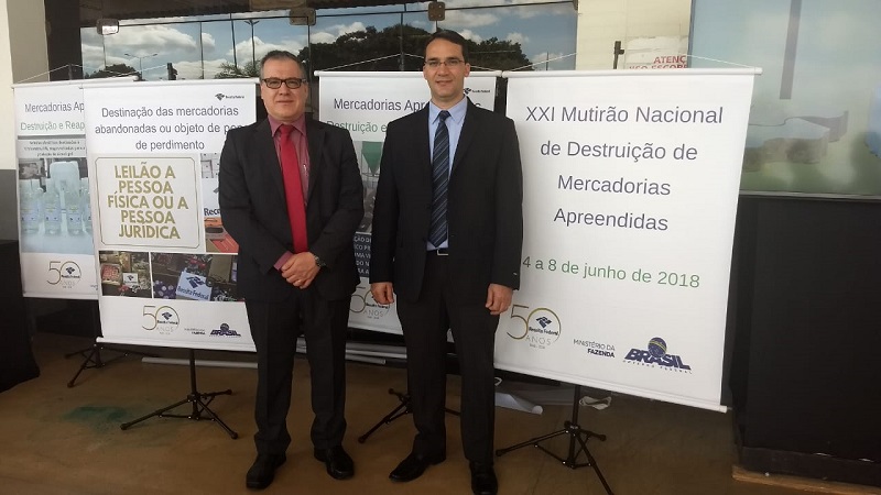 O Sindireceita participou nesta quarta-feira, 06/06, da inauguração do CAC Aduaneiro da Alfândega do Aeroporto de Brasília/DF. A inauguração faz parte do 21º Mutirão Nacional de Destruição de Mercadorias Apreendidas, promovido pela Receita Federal do Brasil, dentro das comemorações da Semana Nacional do Meio Ambiente. O Sindireceita esteve representado pelo diretor Breno Rocha, pelo delegado sindical da DS Brasília, Rafael Caetano Cardoso e por vários Analistas-Tributários da DS/Brasília.