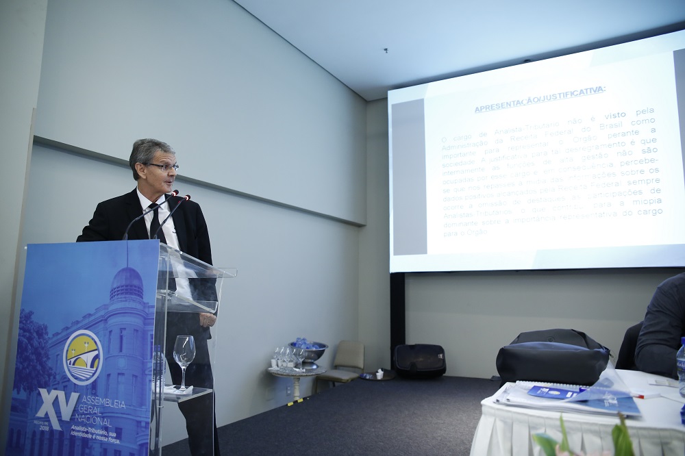 A Plenária aprovou também o projeto de identidade visual dos Analistas-Tributários e a criação de espaços de coworking, como meio para estimular a aproximação com outras entidades sindicais. Por 109 votos favoráveis, 4 contrários e 7 abstenções, os Analistas-Tributários participantes do encontro aprovaram a tese “A Identidade Visual do Analista-Tributário vinculada à marca da Receita Federal do Brasil”, de autoria do delegado na AGN, Hélcio Armond Júnior. Em sua explanação sobre a tese, Hélcio Armond defendeu a importância da identidade visual do cargo. A proposta do delegado sindical prevê ações que reforçam a identidade visual dos Analistas-Tributários, entre elas: uso de trajes que contenham a insígnia que identifique o cargo de ATRFB e a marca da RFB bordados na blusa/camisa e a confecção de diversos materiais contendo estas identificações.