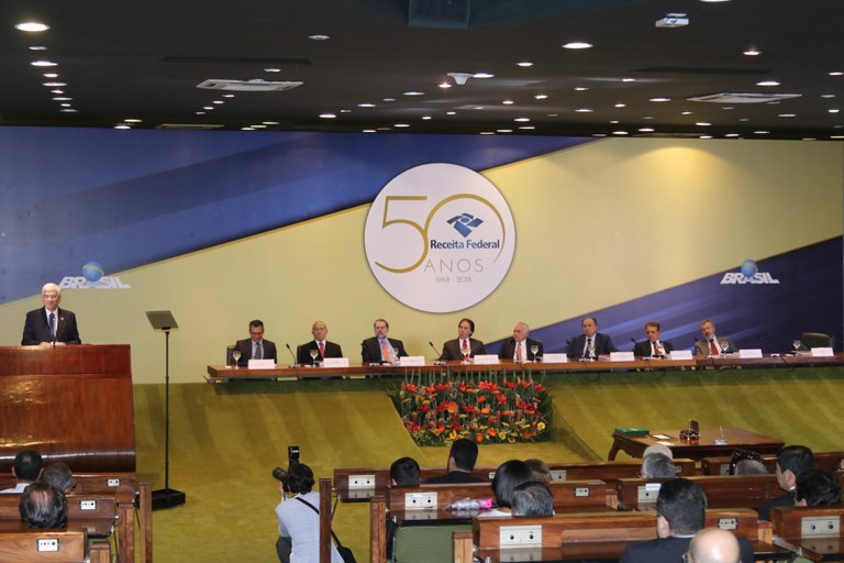 A Secretaria da Receita Federal comemorou 50 anos nesta terça-feira, (20/11), com vários eventos em Brasília. Pela manhã, foi realizada sessão solene no Congresso Nacional. À tarde, houve o descerramento da placa alusiva ao Cinquentenário da Receita Federal, no saguão de entrada do Ministério da Fazenda.