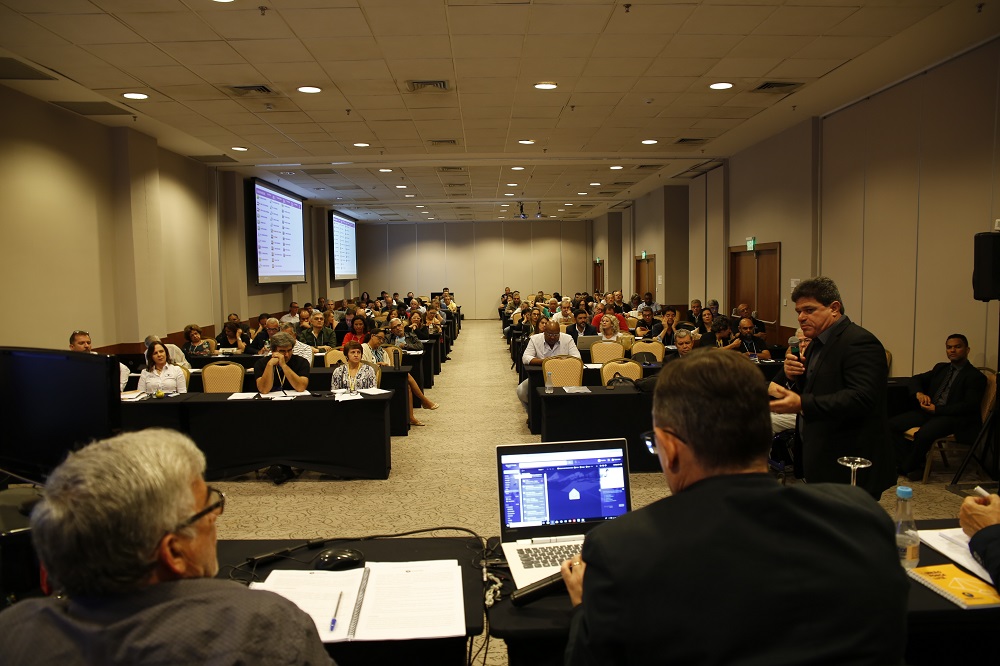 Por unanimidade (33 votos), os conselheiros participantes da LXXIII Reunião Ordinária do Conselho Nacional de Representantes Estaduais (CNRE) do Sindireceita aprovaram na tarde deste domingo, dia 2, o Plano de Metas para 2019 da Diretoria Executiva Nacional (DEN). O documento foi apresentado pelo secretário-geral da DEN, Marcelo de Arruda Campos. A LXXIII reunião do CNRE ocorre no hotel Windsor, em Brasília/DF.