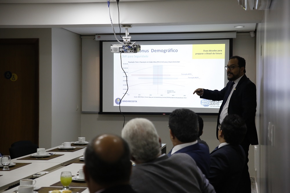 Para esclarecer estes aspectos, o diretor apresentou aos participantes da reunião a projeção da Secretaria Especial de Previdência e Trabalho do Ministério da Economia sobre os impactos da PEC 06. “Expomos as projeções oficiais do governo para mostrar que não é necessário fazer uma reforma do ponto de vista da despesa, como eles estão querendo, mas, sim, do ponto de vista do financiamento. Eu li vários estudos afirmando que o Brasil perdeu o bônus demográfico, mas isso ainda não aconteceu. O bônus é perdido quando a população em idade ativa declina em relação à população total, em termos relativos e absolutos. Isso só vai acontecer no Brasil em 2037, segundo o IBGE. Ou seja, nós ainda temos uma janela de quase 20 anos de bônus demográfico para solucionar os problemas do nosso sistema”, avaliou Schettino.