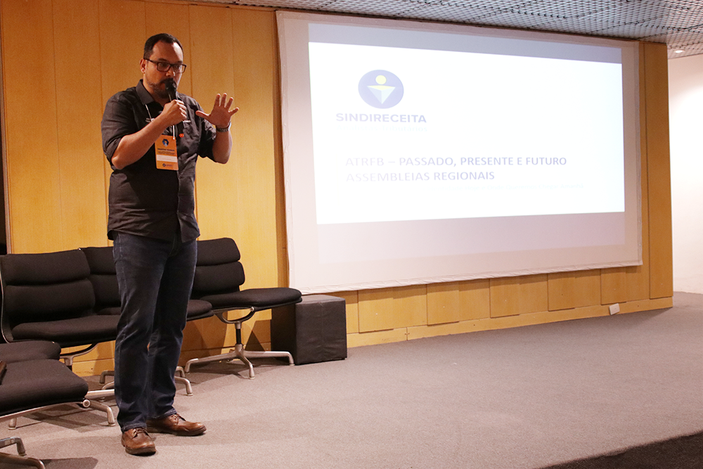 Dando sequência às atividades do VIII Encontro Regional, o diretor de Estudos Técnicos do Sindireceita, Eduardo Schettino, ministrou palestra intitulada “ATRFB – Passado, presente e futuro: como construir nossa identidade hoje e onde queremos chegar amanhã”. Em sua explanação, Schettino apresentou um breve histórico do cargo de Analista-Tributário; esclareceu o contexto atual de remuneração, atribuições e o posicionamento dos servidores na RFB e no serviço público brasileiro, e discutiu o cenário político do País, ressaltando as principais reformas debatidas atualmente pelo Executivo e Legislativo, com ênfase nas reformas da Previdência, Tributária e da Administração Pública.