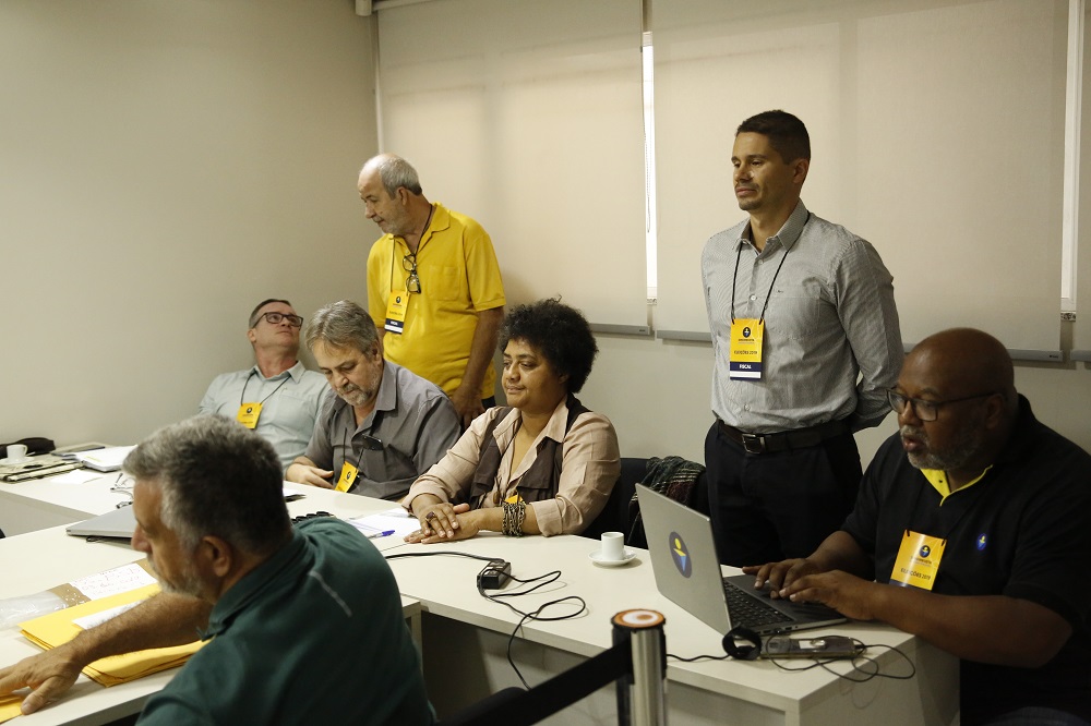 A Comissão Eleitoral Nacional (CEN) do Sindireceita iniciou às 9h desta terça-feira, dia 22, o processo de conferência dos votos efetuados em urna e a apuração dos votos por correspondência e em separado no âmbito das Eleições 2019 do Sindicato. O trabalho está em curso na sede da DEN, em Brasília/DF, e conta com a participação dos membros da CEN e dos fiscais das chapas concorrentes. O pleito ocorrido neste ano elegerá representantes para os cargos da Diretoria Executiva Nacional (DEN) e das Delegacias Sindicais (DS).