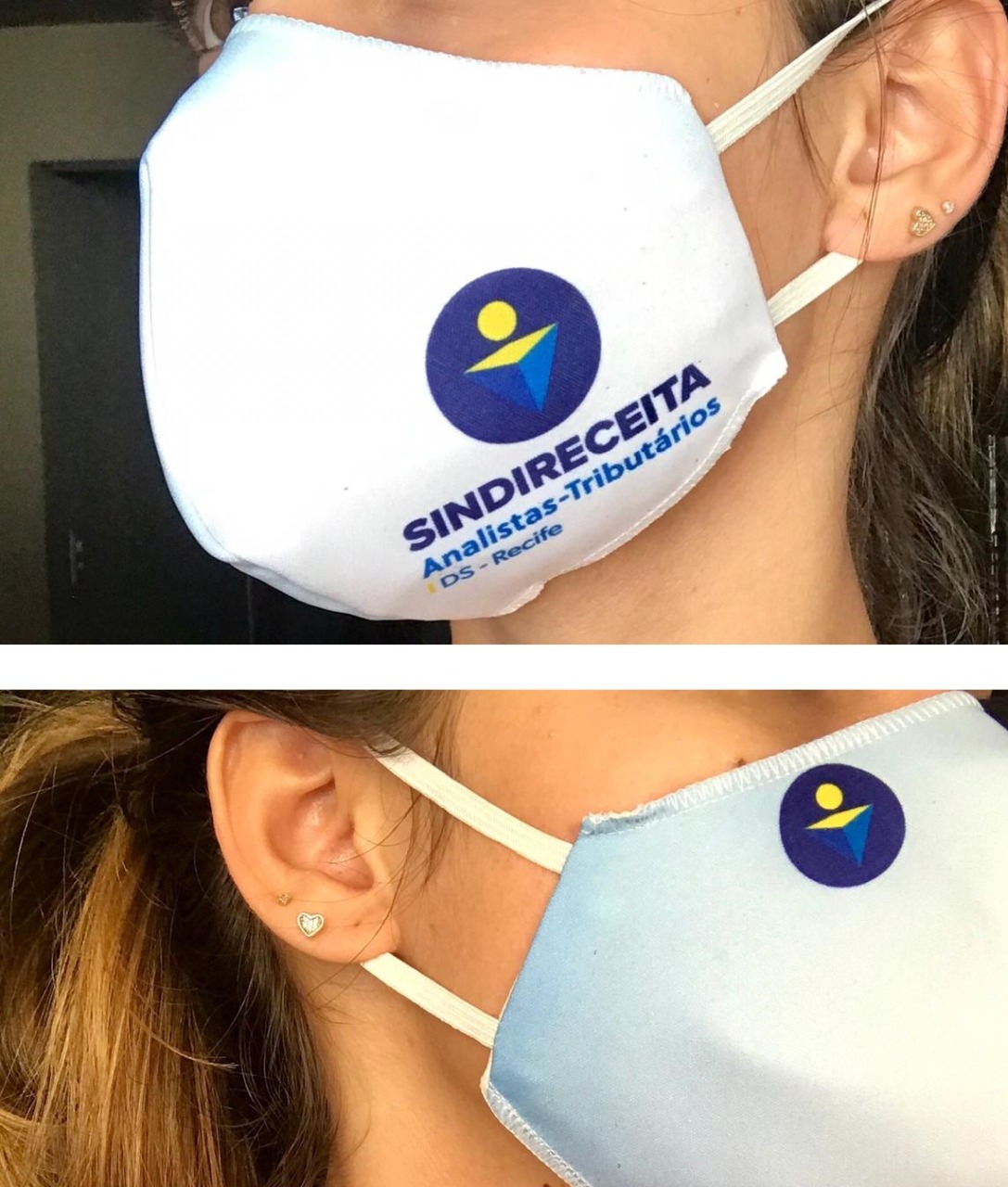 As máscaras têm tripla camada de proteção, são feitas de 100% algodão e confortáveis de usar. Cada “dupla de máscaras” contém uma unidade predominantemente branca, com a marca colorida do Sindireceita, e outra, predominantemente azul e com a marca do Sindicato na cor branca, combinando inclusive com os uniformes aduaneiros.