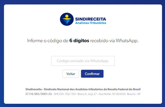 Após receber o código, informe-o na tela de acesso ao Sistema de Votação Eletrônica do Sindireceita e clique em Confirmar