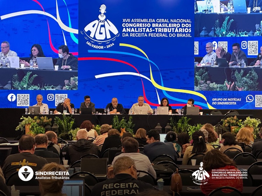 A Plenária da XVII Assembleia Geral Nacional (AGN) Ordinária/Congresso Brasileiro dos Analistas-Tributários da Receita Federal do Brasil aprovou, nesta quinta-feira, dia 5, um conjunto de teses apresentadas pelas bases e também iniciou as discussões sobre a reforma estatutária.