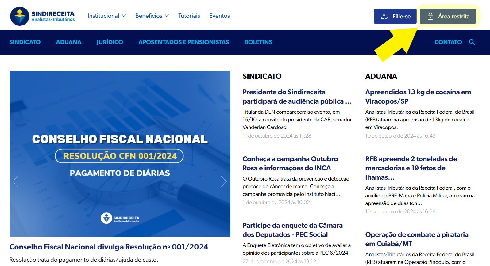 Acesse a Área restrita. Lembramos que para entrar na Área restrita do site o filiado/filiada precisa estar logado