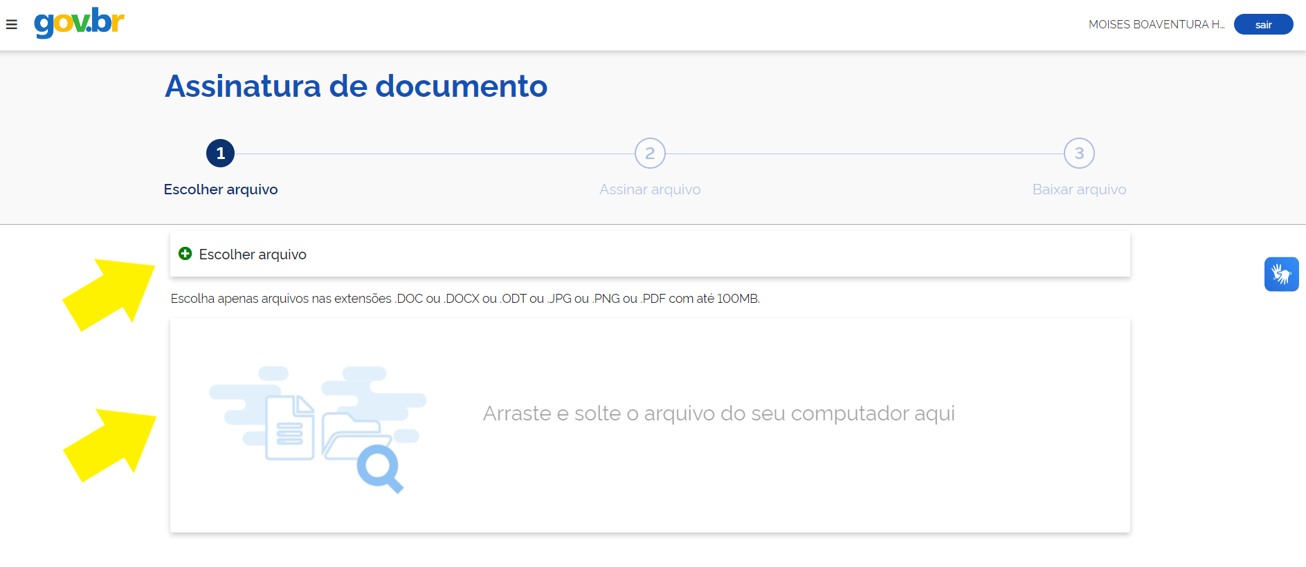 Clique no ícone que simboliza salvar documento e depois acesse o sistema de assinatura eletrônica no GOV.BR