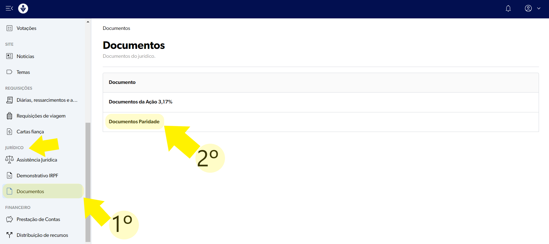 Clique em DOCUMENTOS e depois em DOCUMENTOS PARIDADE