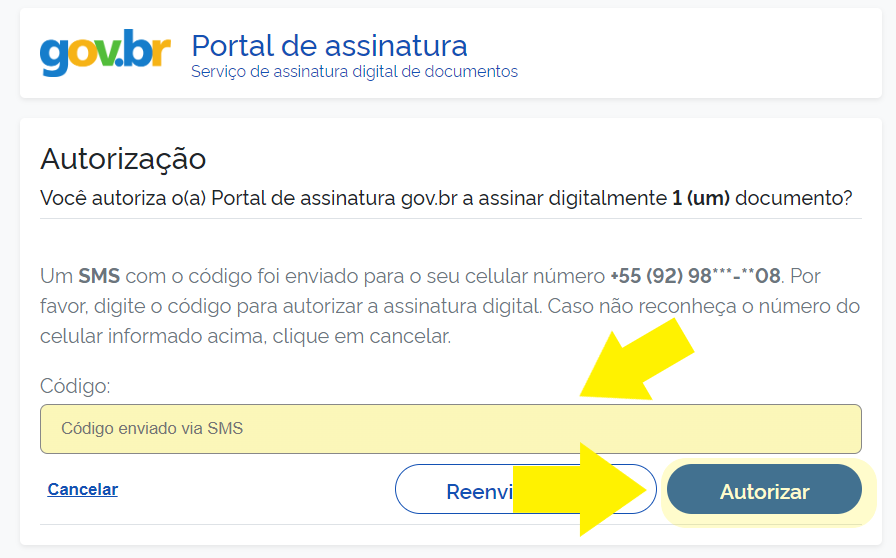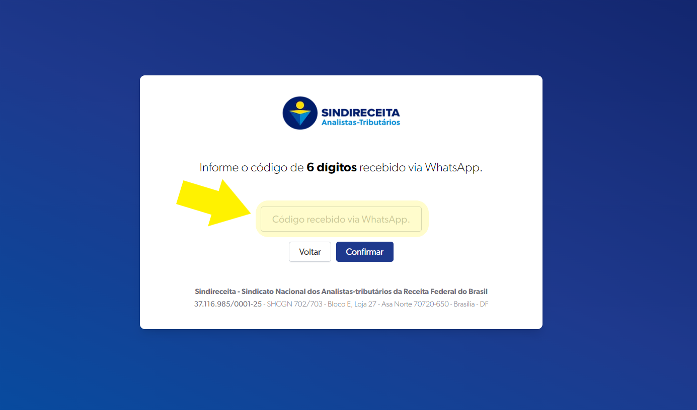 Ao receber seu código de acesso informe-o no local disponibilizado pelo sistema.