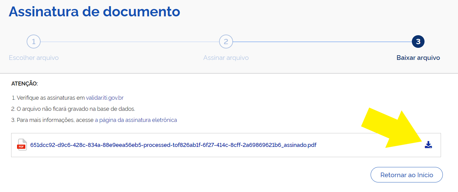 Pronto! Seu documento estará assinado digitalmente. Baixe o documento assinado