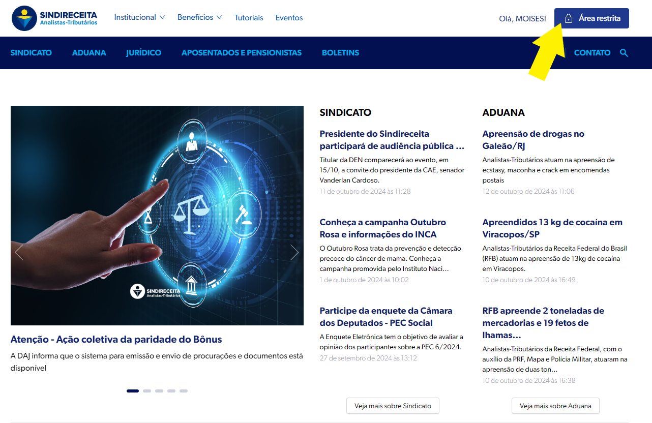 Entre na Área Restrita do site (lembre-se: você precisa fazer login para acessá-la).