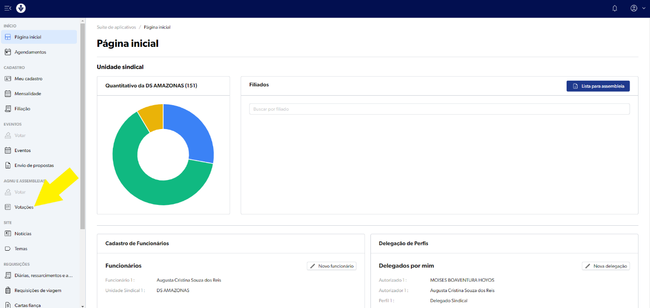 Clique na opção “VOTAÇÕES”, localizada no menu esquerdo da Suíte de Aplicativos.