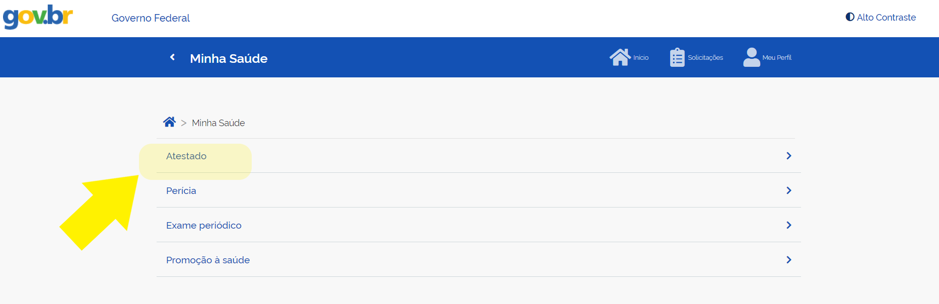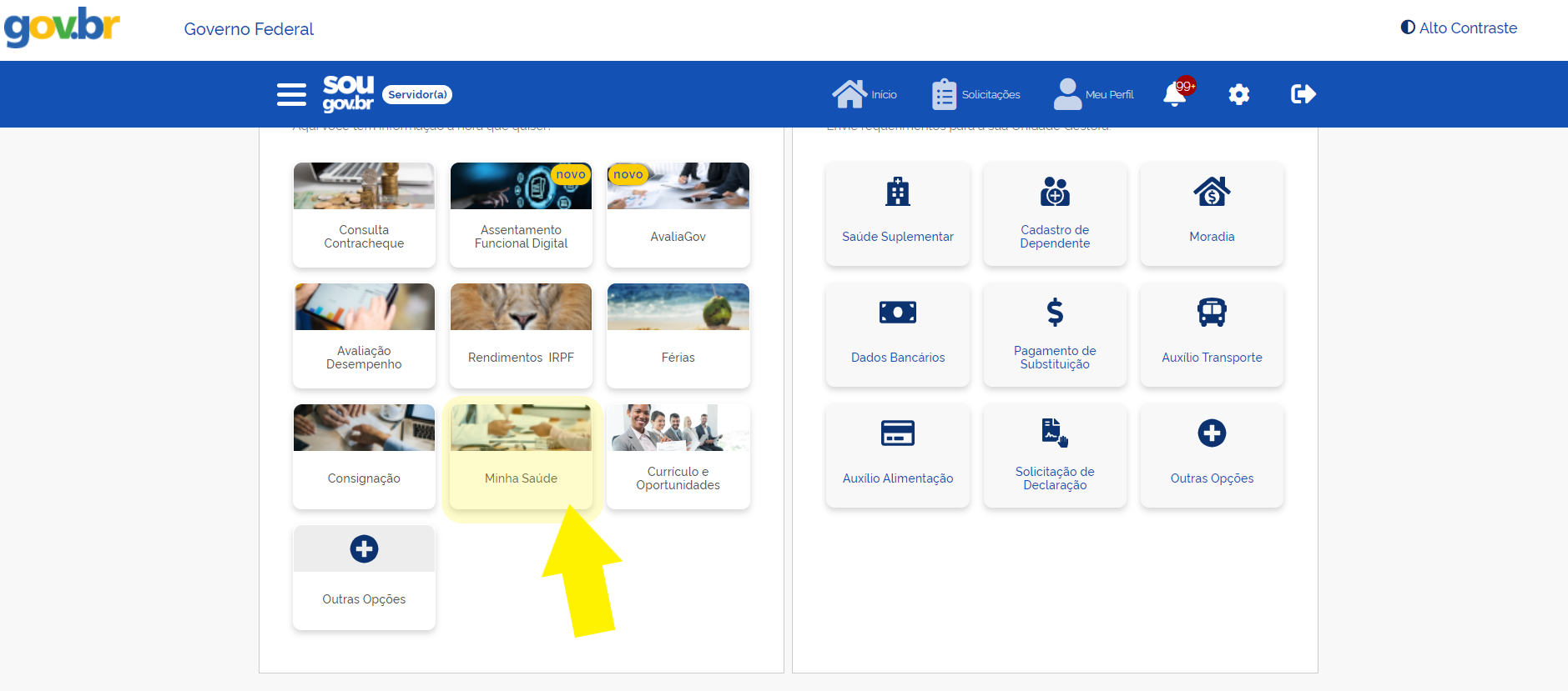 Navegar até o menu Autoatendimento e clicar em Minha Saúde
