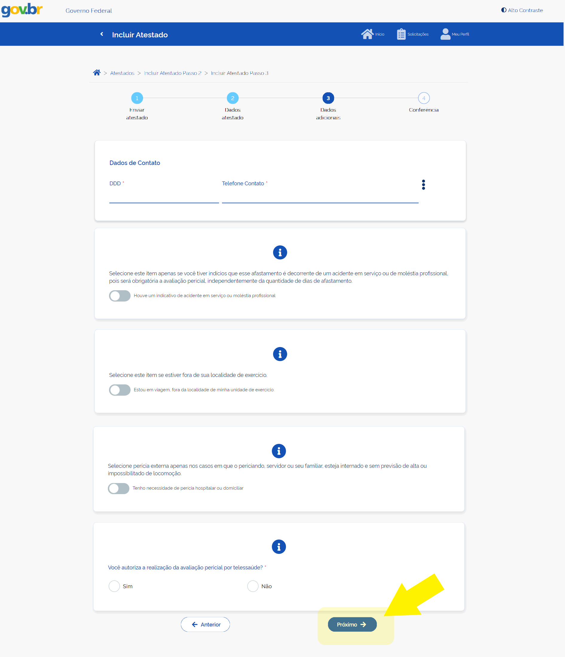 Preencher o formulário, observando os campos obrigatórios com asteriscos vermelhos