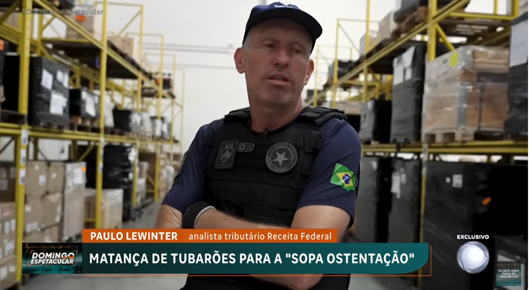Durante a exibição da reportagem o Analista-Tributário da Receita Federal do Brasil (RFB), Paulo Lewinter, foi entrevistado e prestou várias informações sobre a questão da matança de tubarões e como a Receita Federal tem atuado para tentar coibir a comercialização desse produto.