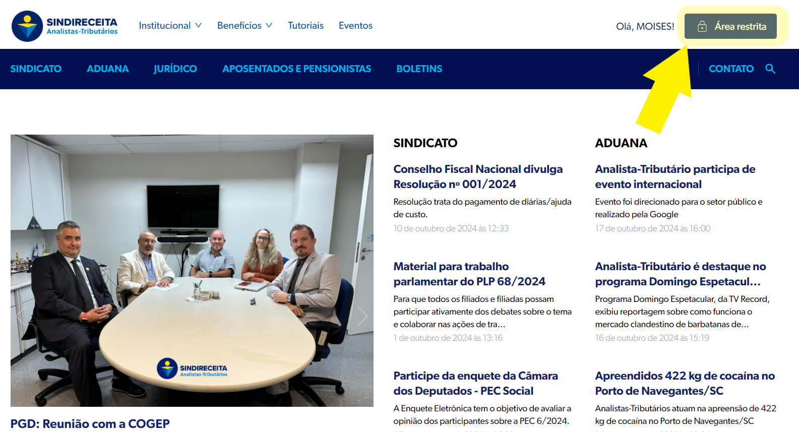Como acessar a Área restrita do Sindireceita