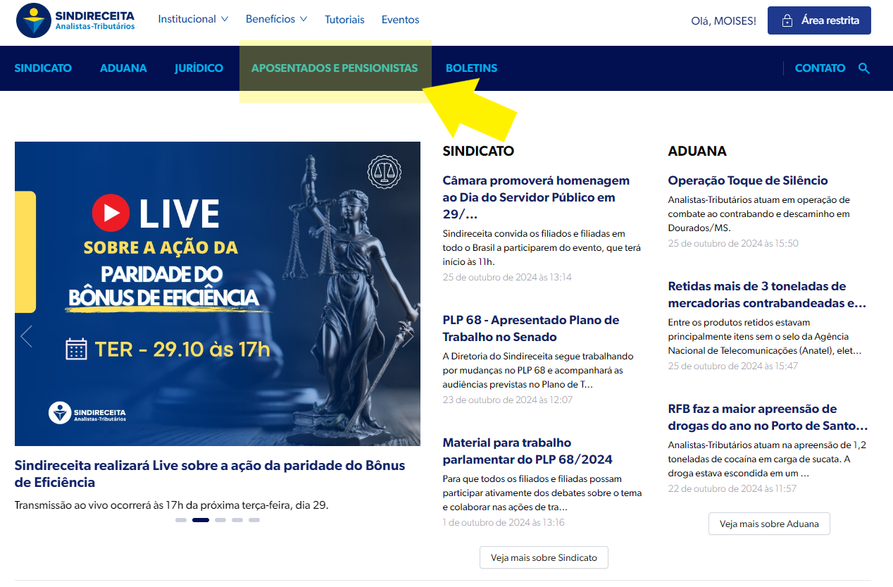 Então não perca tempo, venha conhecer sua página no site do Sindireceita. Segue um roteiro sobre a página Aposentados e Pensionistas: