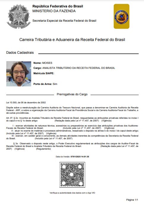 A última novidade apresentada é a disponibilização da Carteira Funcional Especial da Carreira Tributária e Aduaneira da Receita Federal do Brasil, para os Analistas-Tributários e Analistas-Tributárias que estão na ativa. Veja como acessar o documento:
