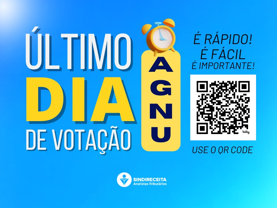 Atenção, colega filiada e filiado: hoje é o último para registrar o seu voto na nossa Assembleia Geral Nacional Unificada (AGNU). O Sindireceita ressalta que a sua participação é fundamental para definirmos os horizontes da nossa mobilização em defesa da categoria. A votação segue aberta até às 23h59 desta sexta-feira, dia 17. Participe!