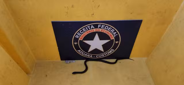 Analistas-Tributários da Receita Federal do Brasil (RFB) atuaram na manhã de hoje, dia 23, na apreensão de duas cobras da espécie real-mexicana-negra (Lampropeltis Getula Nigrita) ilegais no terminal de cargas do Aeroporto de Fortaleza/CE.