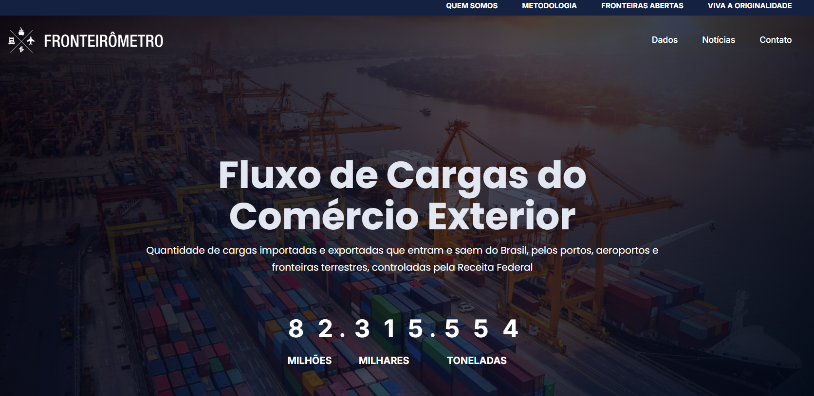 O “Fronteirômetro” apresenta projeções “online” do fluxo do comércio exterior brasileiro durante o ano. Para alcançar as projeções para o ano de 2022 foram considerados os dados oficiais dos anos de 2016 a 2021, informações públicas, fornecidos por Ministérios, Agências e Órgão Governamentais.