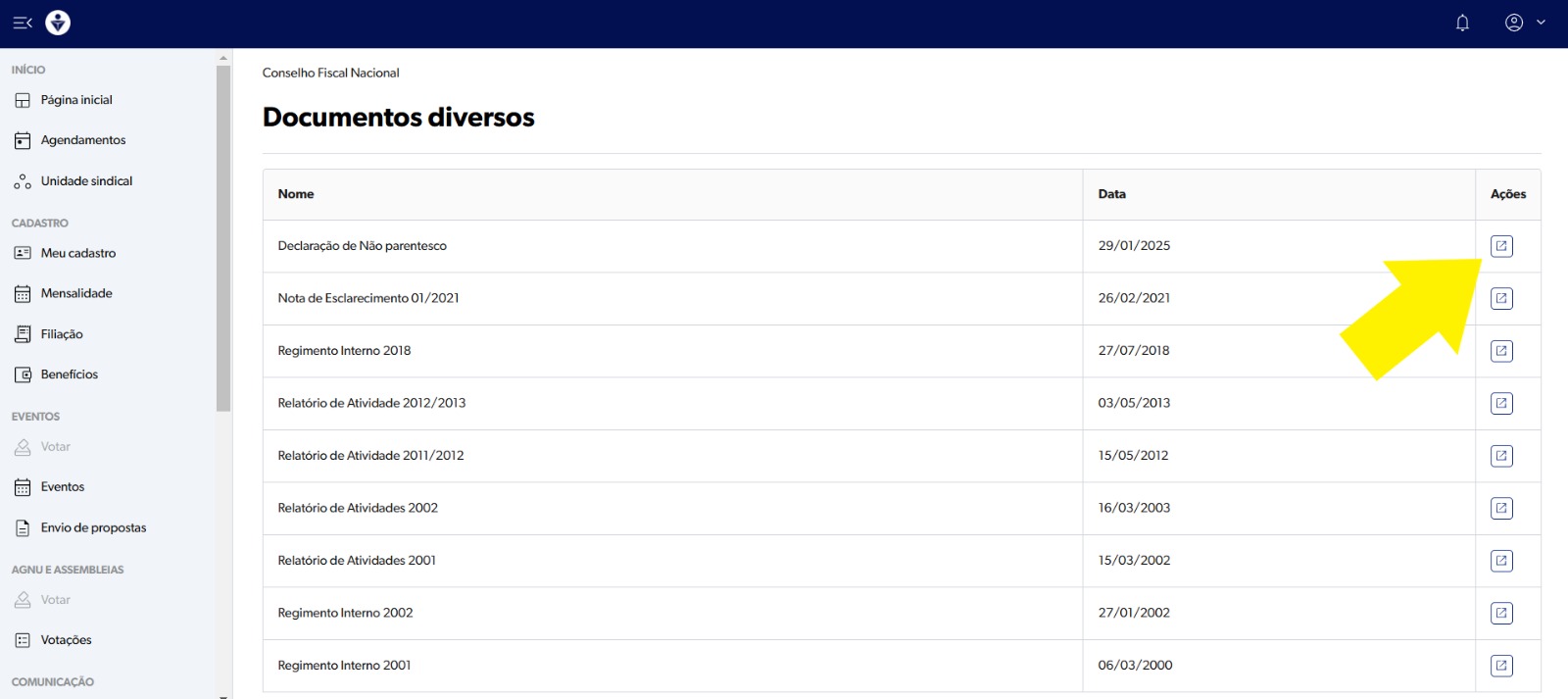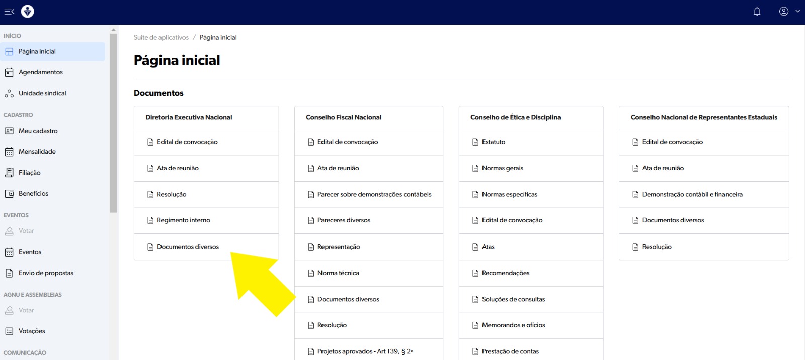 Em seguida, na coluna Documentos, clique em Documentos Diversos, conforme a imagem abaixo: