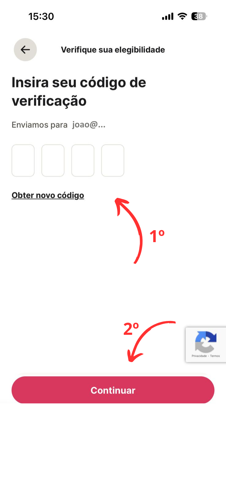 3. Clique em Continuar e, depois, pesquise a nova empresa que oferece o benefício. Preencha a informação solicitada, que pode ser o e-mail cadastrado pelo RH da sua empresa, CPF, número de matrícula, ou uma combinação desses dados. Caso o e-mail cadastrado pelo RH da sua empresa seja solicitado, você terá que inserir um código de verificação que será enviado neste e-mail.