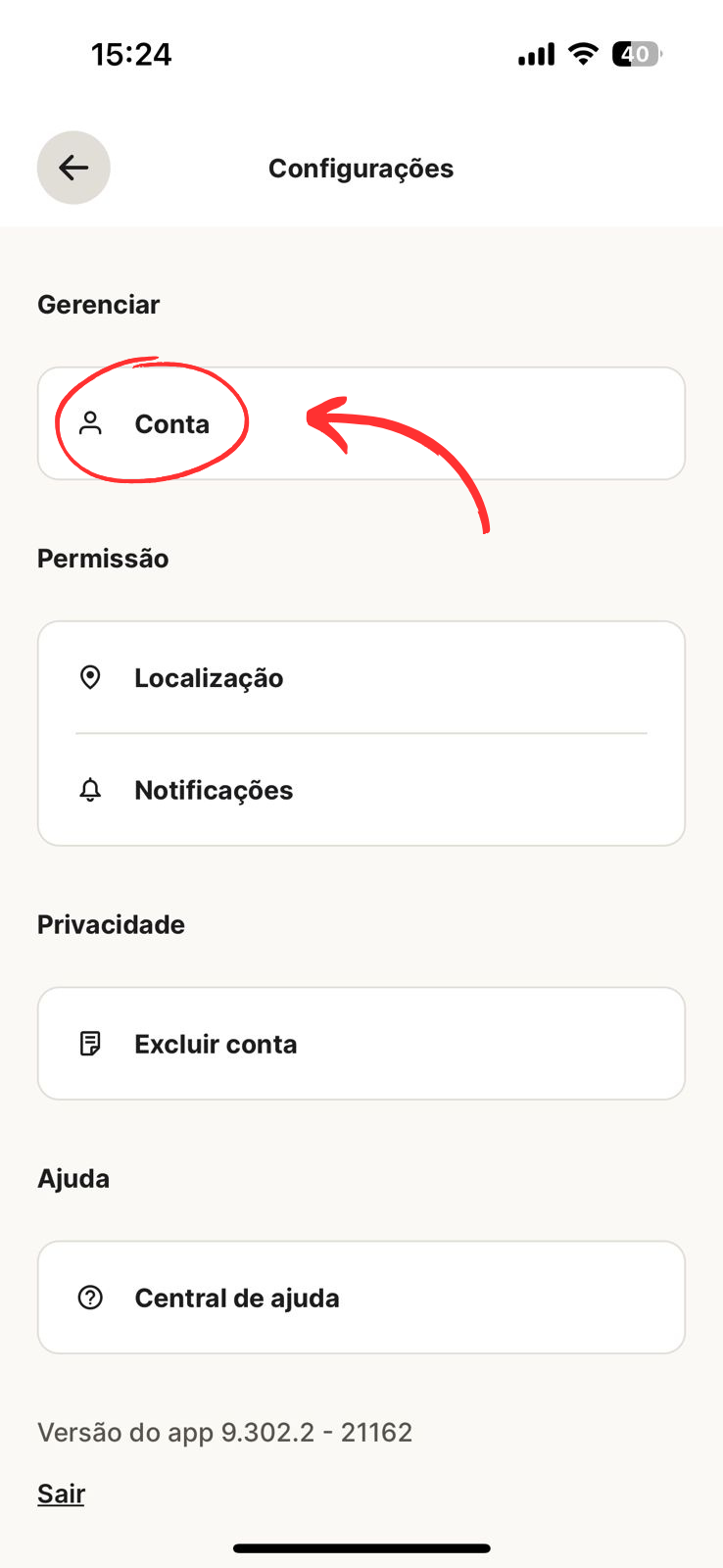 2. Selecione a opção Conta e clique em Provedor Wellhub;