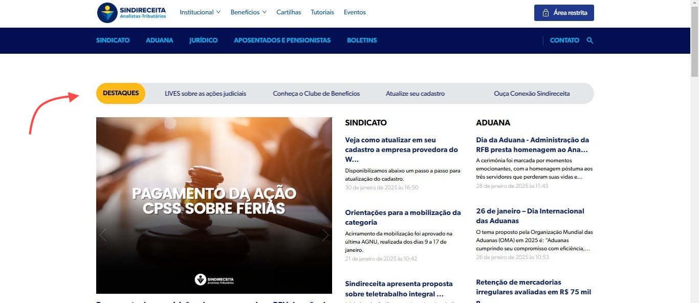 Outra atualização significativa foi a implementação de uma barra rotativa com publicações em destaque, localizada na página inicial do site. A ferramenta permite que os visitantes acompanhem de forma dinâmica os conteúdos mais importantes e recentes publicados pelo Sindireceita, garantindo maior visibilidade às pautas de maior relevância.