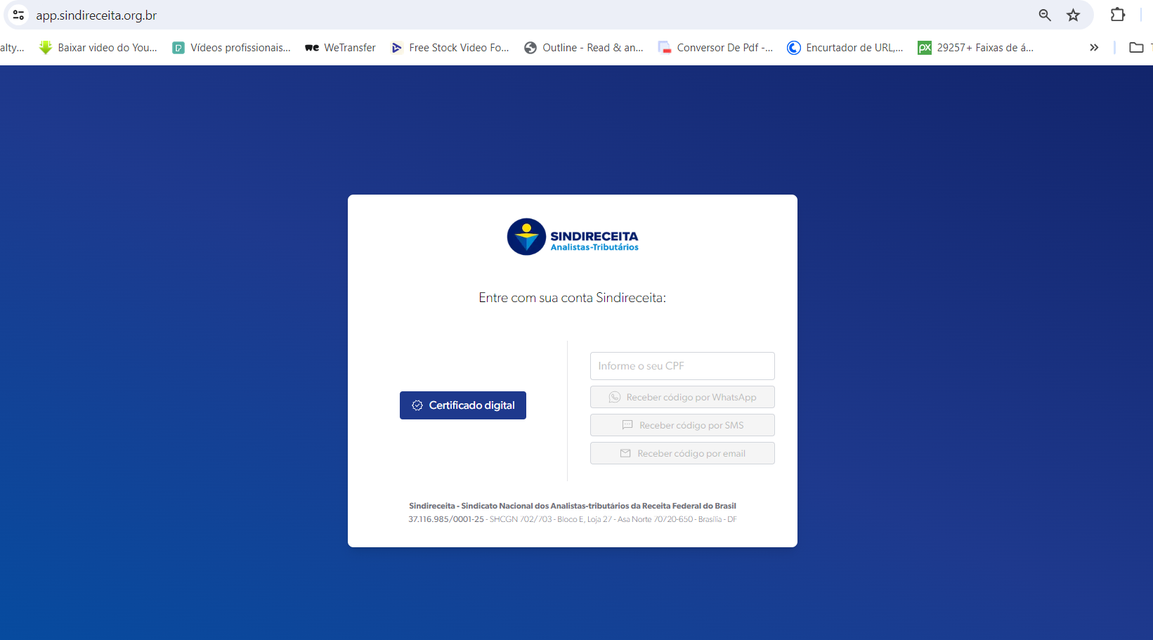 ATENÇÃO: Lembremos que é necessário se logar para acessar a Área restrita do site do Sindireceita
