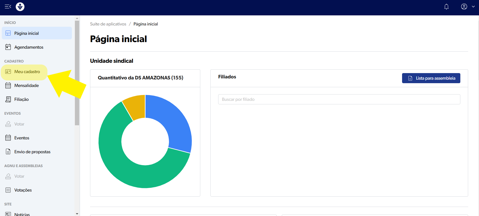 2. Ao acessar a Área restrita, na barra do lado esquerdo, escolha a opção "Meu cadastro".