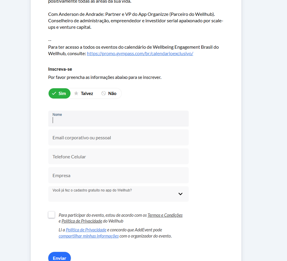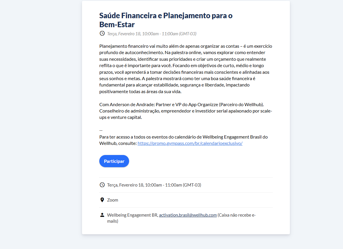 Acesse a página de eventos da Wellhub e convide seus colegas para fazer parte dessa jornada.