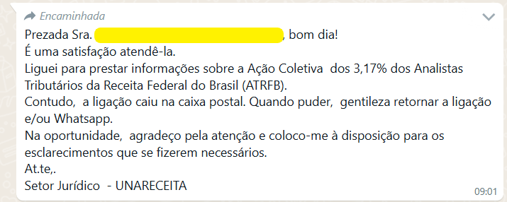 Nos últimos dias, a DEN, por diversos canais de comunicações, tem recebido inúmeros relatos de filiadas e filiados, especialmente, aposentadas e aposentados, que vêm sendo assediados, coagidos psicologicamente e enganados com falsas promessas de celeridade e êxito em ações judiciais, por diversos meios, para fornecerem informações do cumprimento de sentença (execução) da ação judicial dos 3,17% e de outras ações, cujo título executivo judicial foi obtido pelo Sindireceita.