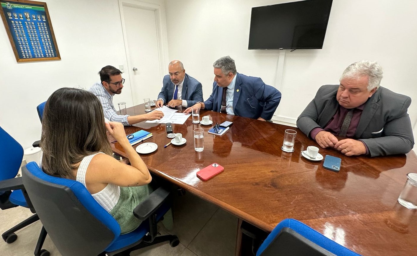 O presidente do Sindireceita, Thales Freitas e os diretores Fabiano Rebelo (Estudos Técnicos) e Sérgio de Castro (Assuntos Parlamentares) estiveram reunidos na manhã dessa quinta-feira, dia 20, com a assistente parlamentar intermediária do gabinete do senador Jorge Kajuru (PSB-GO), Luma Rosa Paschoalato e com o analista legislativo integrante do gabinete do senador Flávio Arns (PSB-PR), Diogo Macedo de Novaes. A reunião ocorreu no gabinete da liderança do PSB, no Anexo 2 do Senado Federal, em Brasília/DF.
