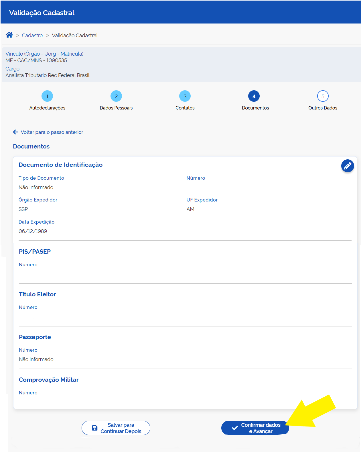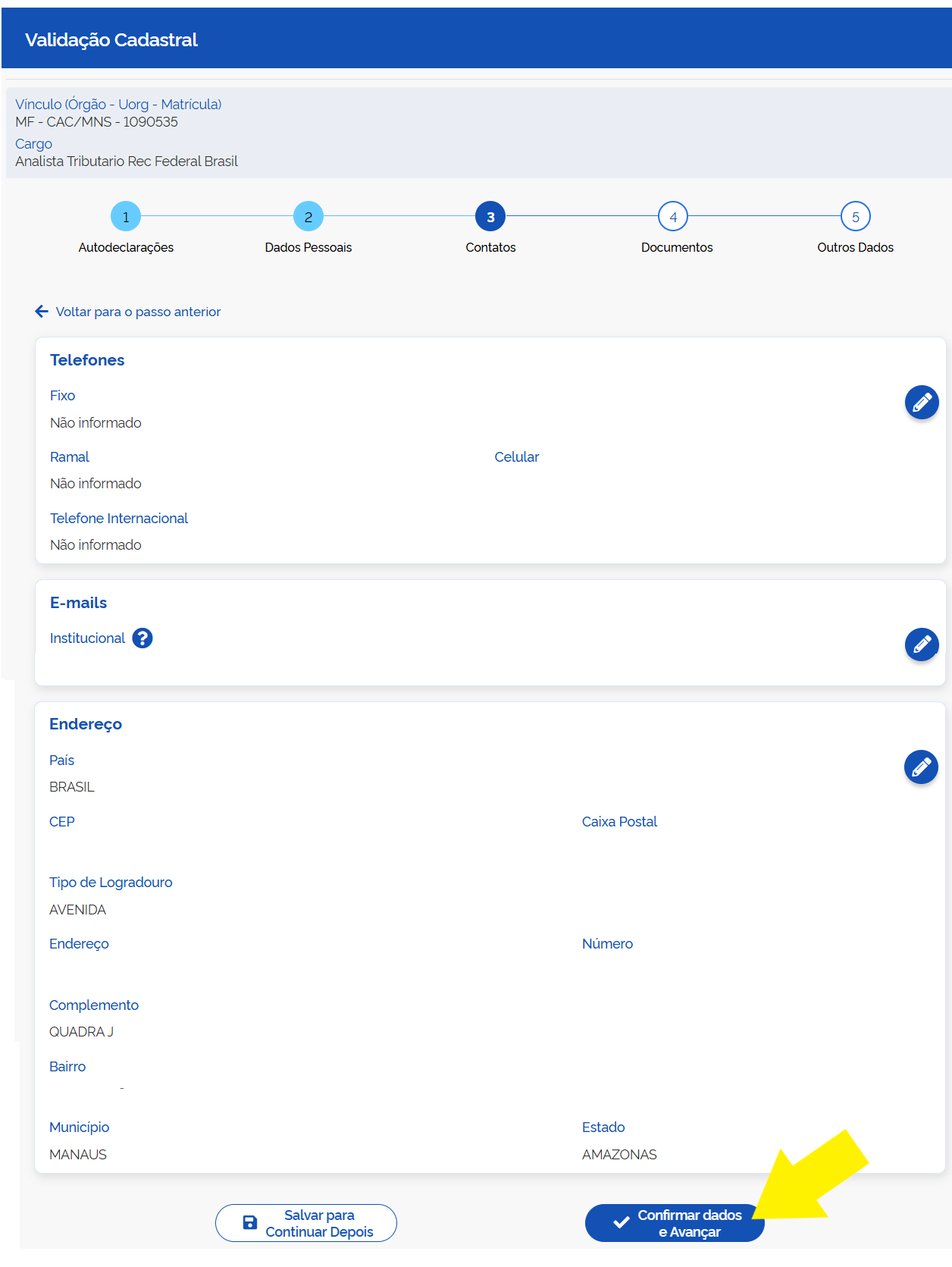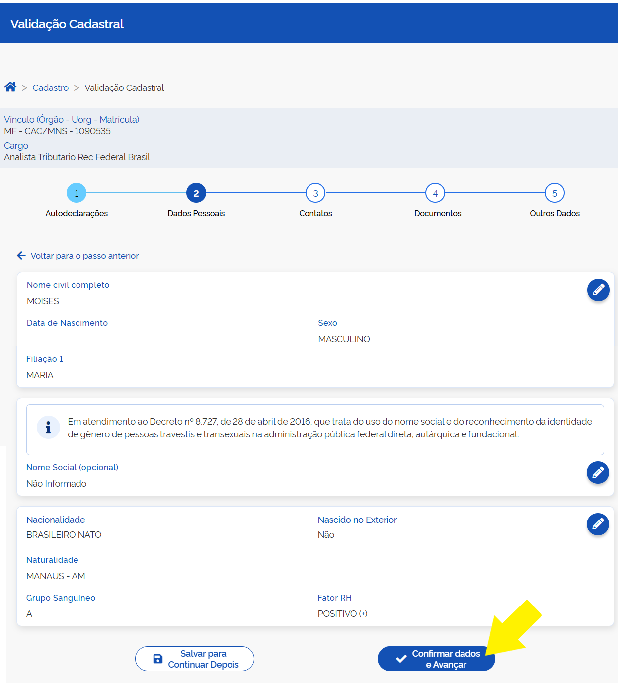 Confirme seus Dados Pessoais