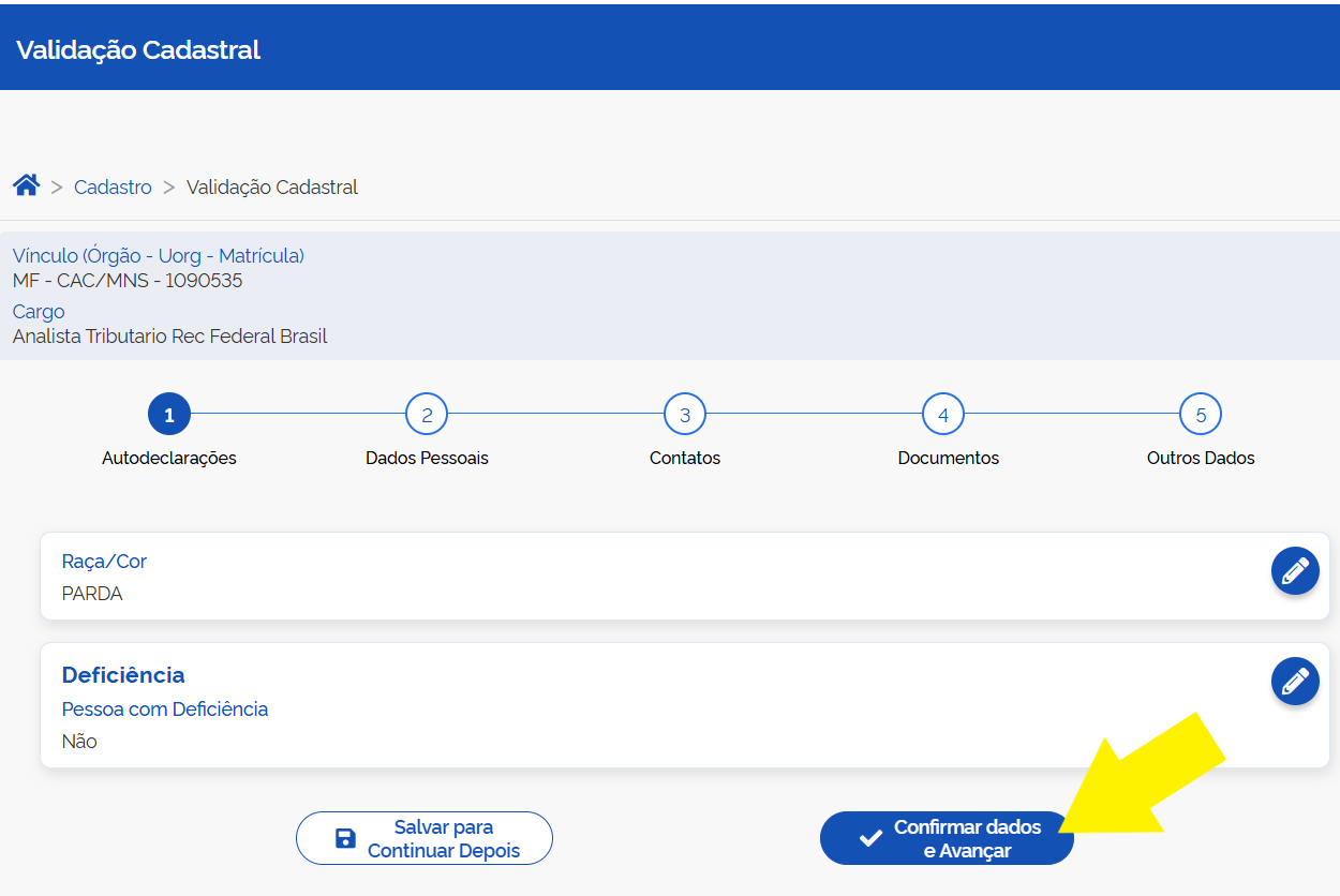 Confira todas as informações constantes no sistema, que inicial com as Autodeclarações
