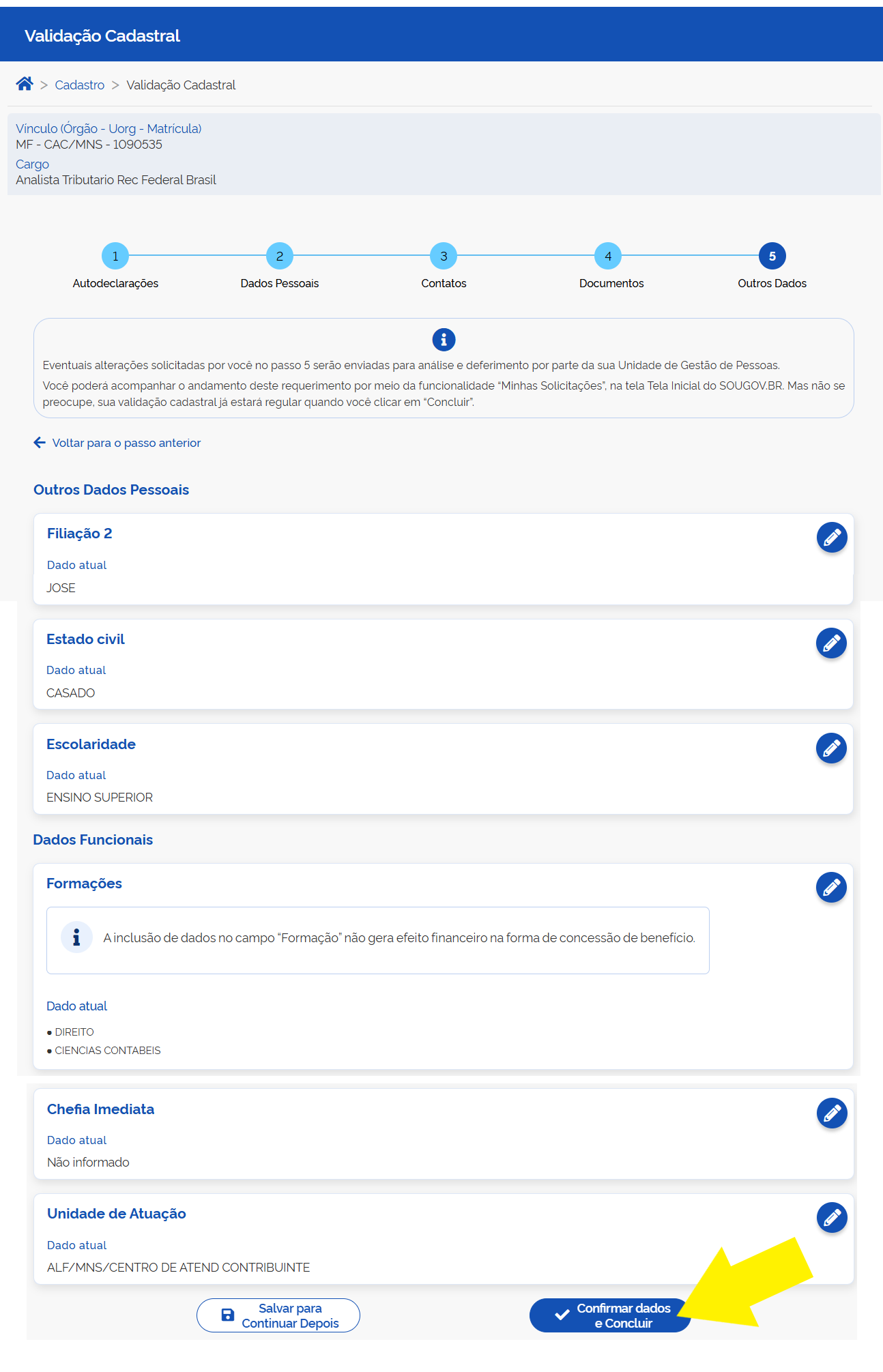 SOUGOV.BR - Validação dos dados cadastrais