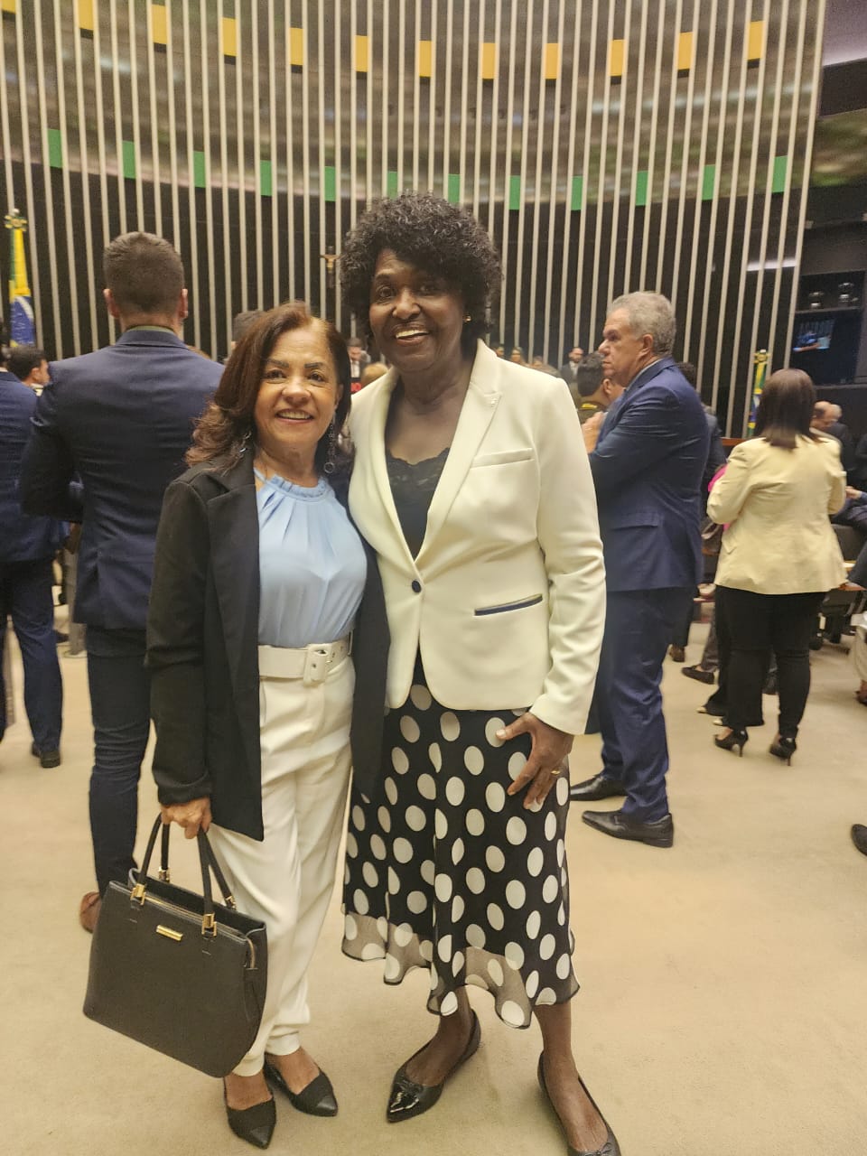 Representando as Analistas-Tributárias e os Analistas-Tributários a secretária-geral da Diretoria Executiva Nacional, Iêda Miranda e a diretora de Aposentados e Pensionistas do Sindireceita, Marlene Cambraia participaram na manhã desta quarta-feira, dia 19, da sessão solene especial no Plenário Ulysses Guimarães em homenagem aos 40 anos da redemocratização do Brasil.