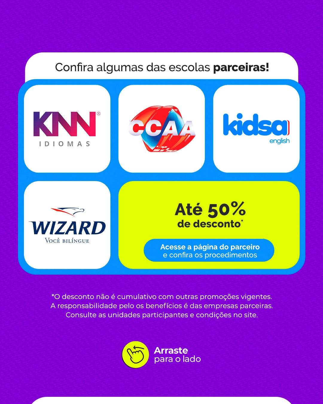 O Clube de Benefícios do Sindireceita mantém parcerias com as principais redes de ensino de idiomas que atuam em todo o Brasil.