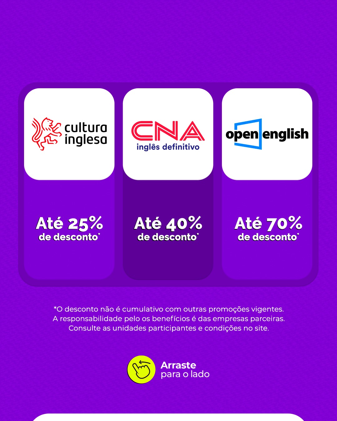 O Clube de Benefícios do Sindireceita oferece descontos exclusivos para as filiadas e filiados em cursos de idiomas. Os descontos variam de 25% a 50% em cursos presenciais e até 70% para cursos on line.