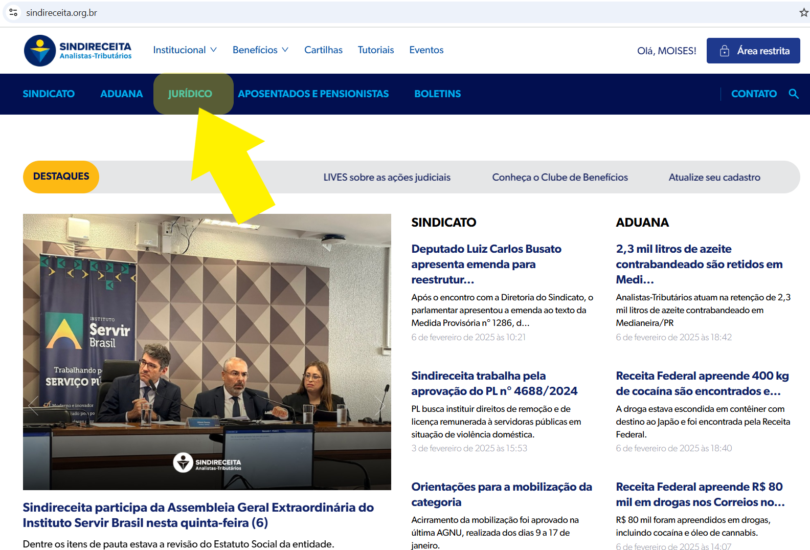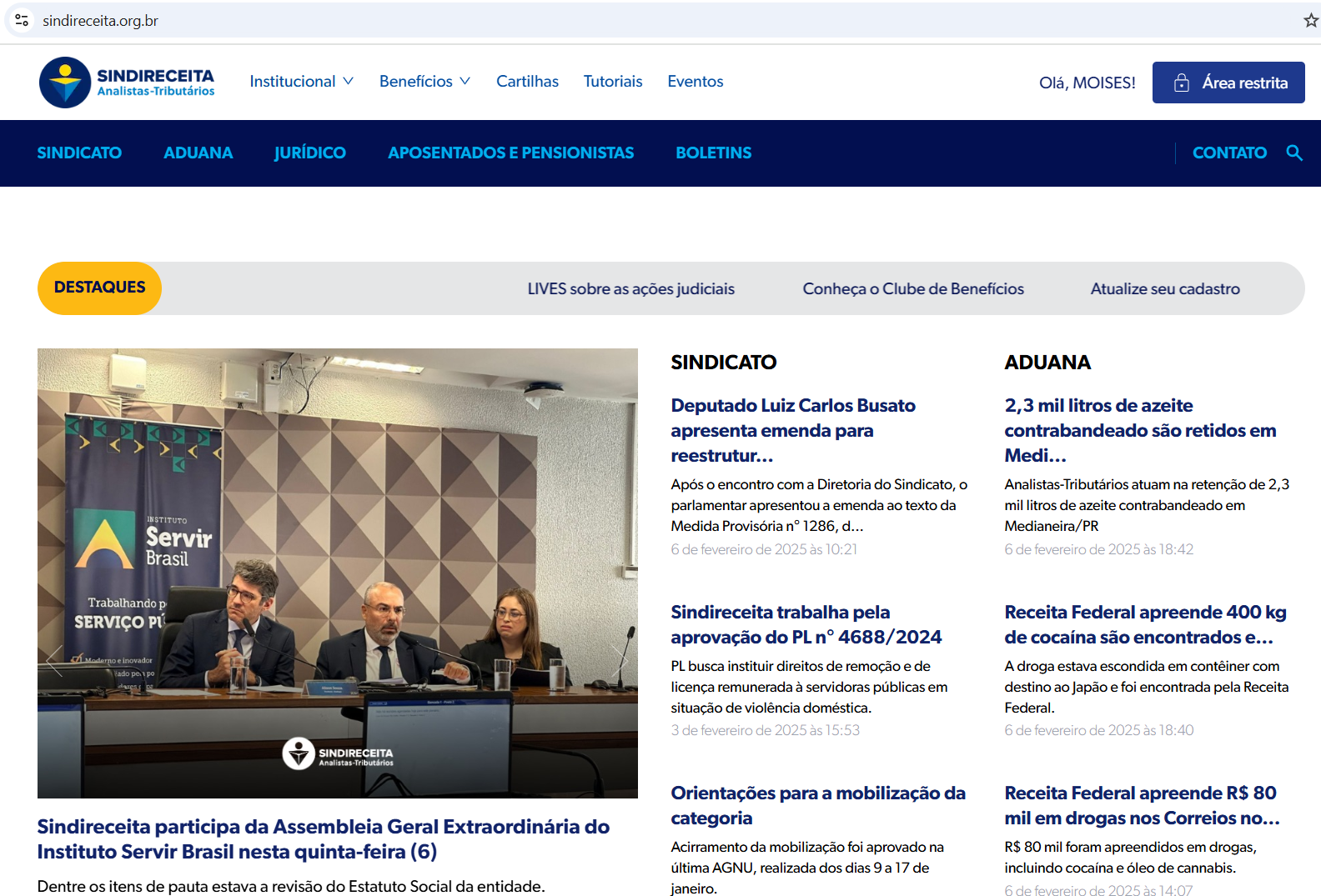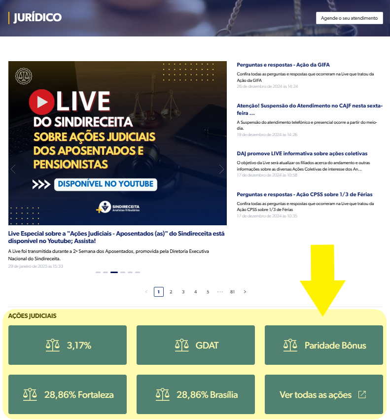 O novo site do Sindireceita apresenta uma área exclusiva sobre ações judiciais. Para acessar basta ENTRAR NO SITE