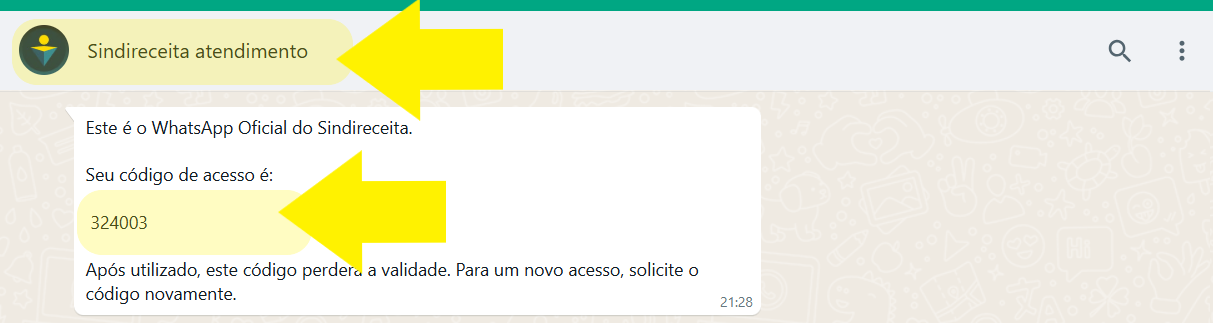 ATENÇÃO: Outra observação a ser feita é que para receber o código o filiado ou filiada deve salvar em seu celular o número do telefone do SINDIRECEITA ATENDIMENTO 61 3962-2305.