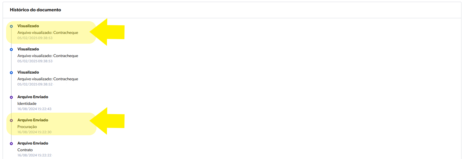 Ainda na página DOCUMENTO o filiado ou filiada terá o HISTÓRICO DO DOCUMENTO, que apresentará todo o andamento da documentação enviada.