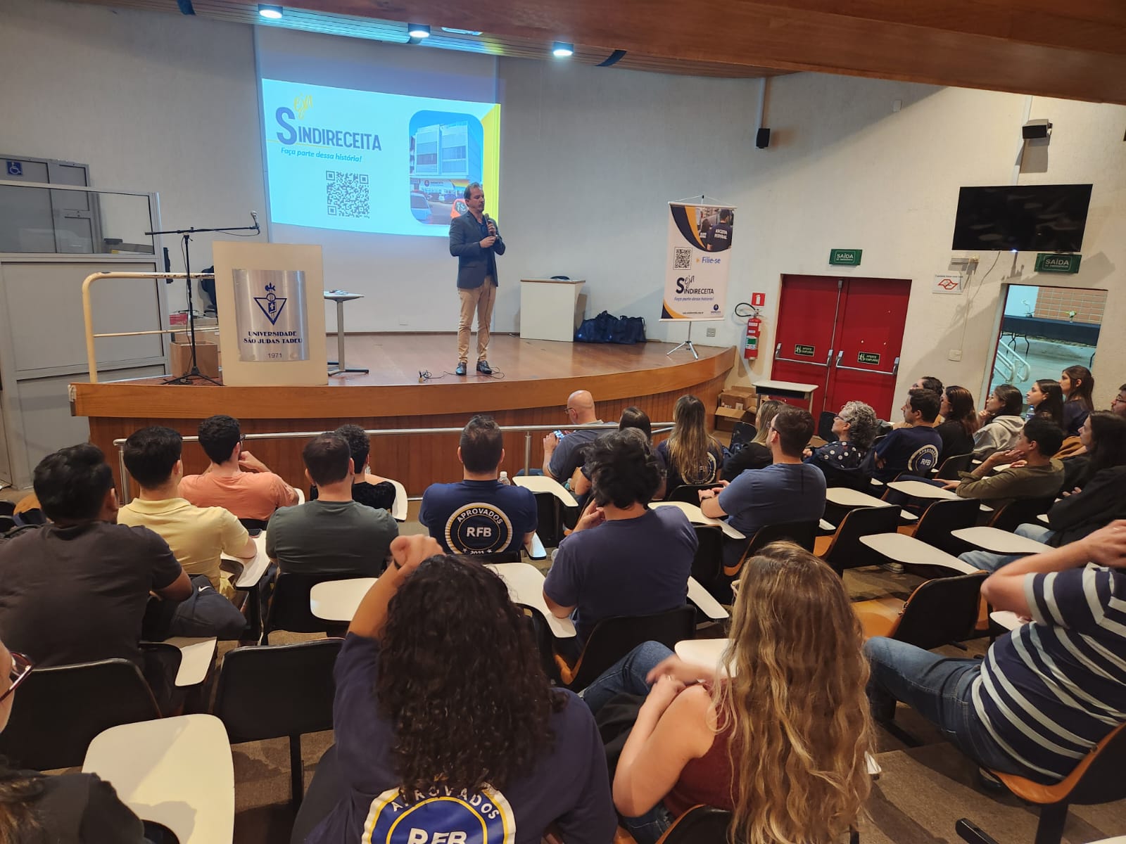 Ao final de sua explanação, Thales Freitas convidou os novos Analistas-Tributários e Analistas-Tributárias a filiarem-se ao Sindireceita, enfatizando a atuação do Sindicato em diversas frentes de luta por valorização, reconhecimento e proteção dos direitos da categoria. “Vocês estão entrando em um Órgão de muito prestígio no serviço público brasileiro. A Receita Federal tem acesso a informações extremamente privilegiadas de todos os contribuintes e isso gera uma responsabilidade muito grande para todos nós. Nossas atribuições são sensíveis e envolvem riscos, tanto na área de tributos internos quanto na Aduana, principalmente. Por isso, a filiação ao Sindireceita é importante, pois ela garante segurança aos Analistas-Tributários no exercício de suas funções”, declarou.