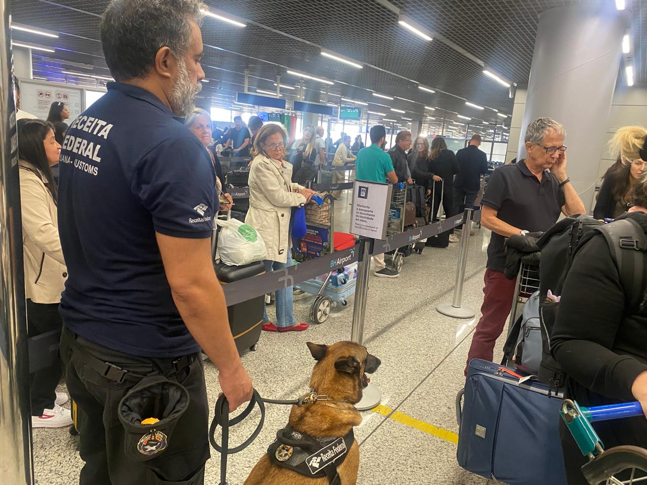 Durante a atividade, aproximadamente 40% dos viajantes foram selecionados para inspeção no raio-X, um número significativamente superior à média diária de 10%. Além disso, a ação contou com o suporte de um cão farejador da equipe K9, reforçando o controle na fila de inspeção e ampliando a abrangência da fiscalização.