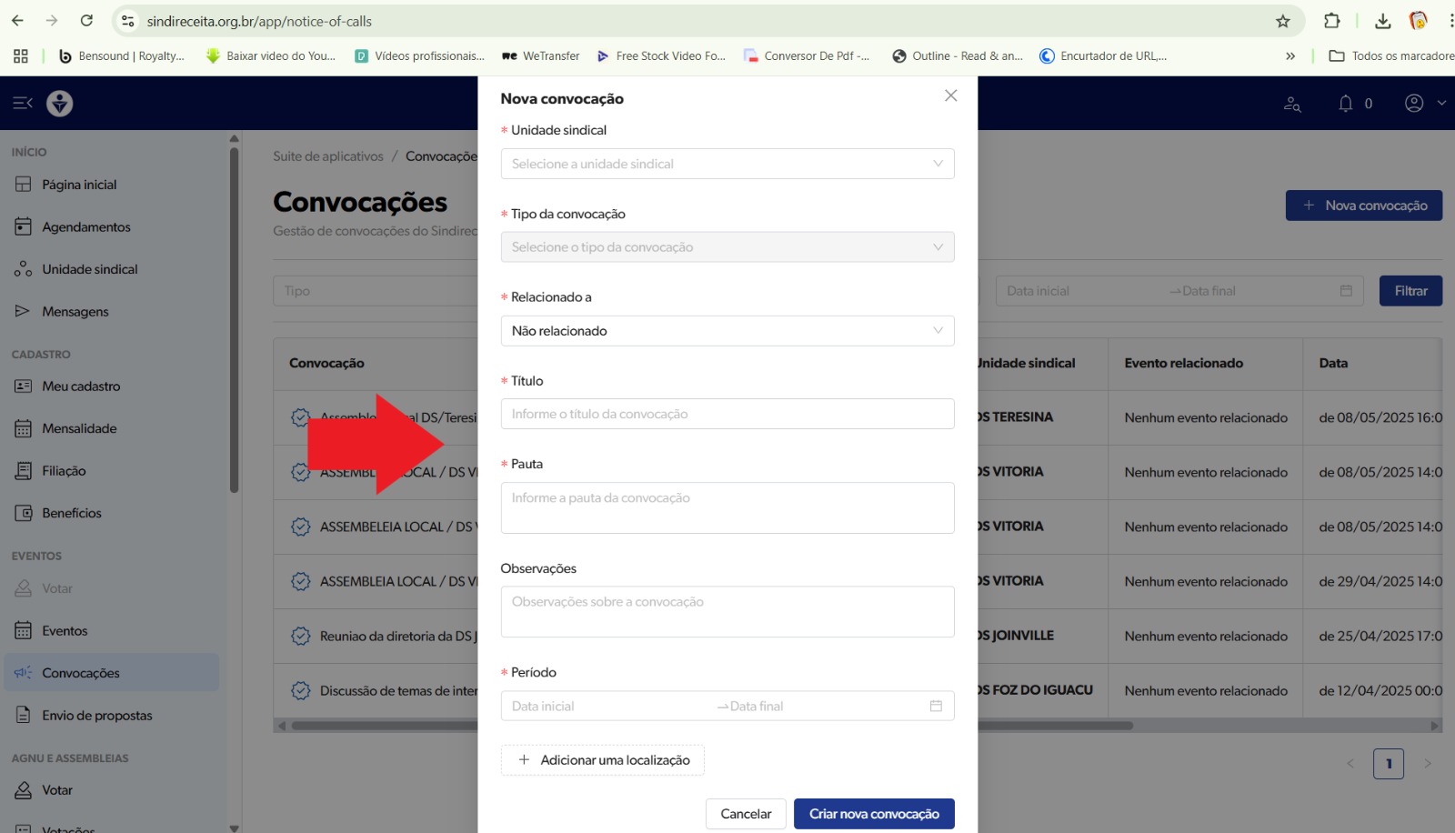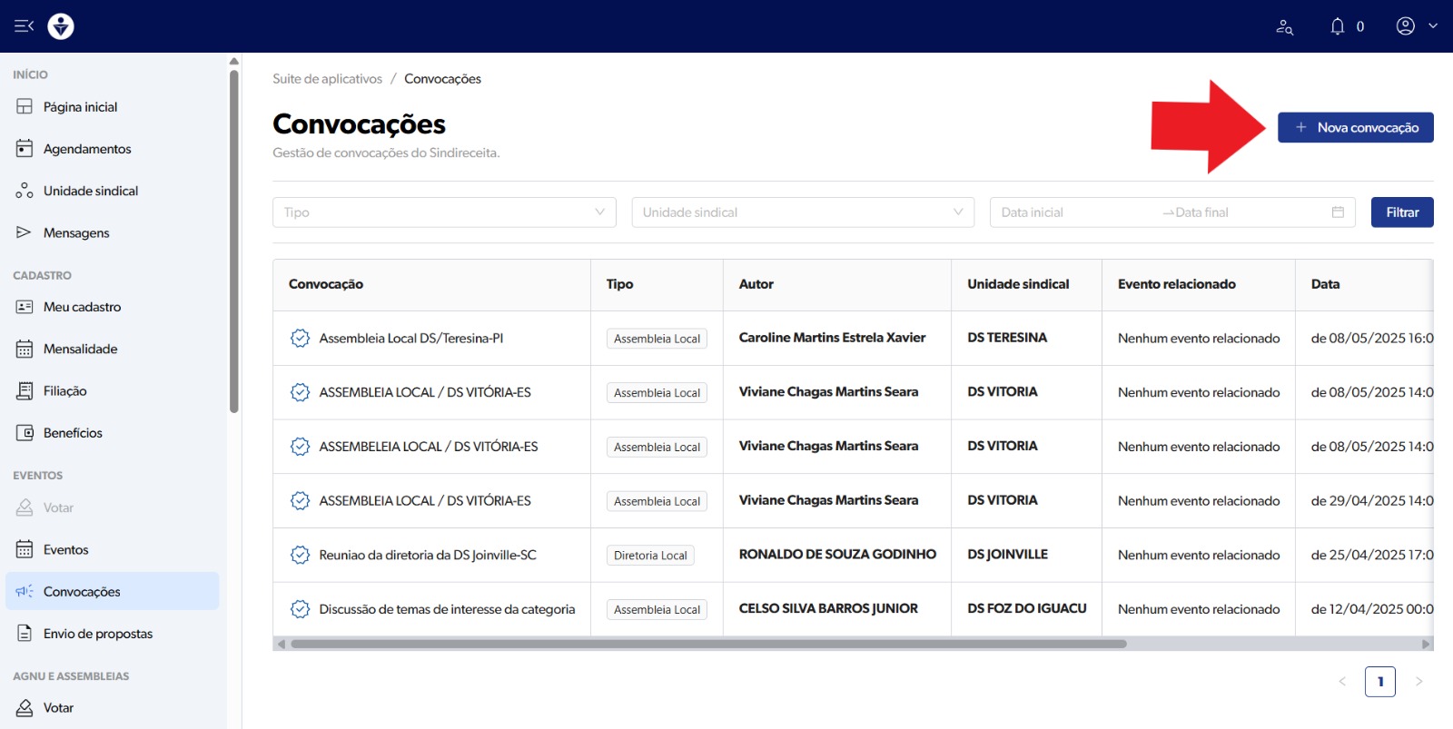 Depois clique em NOVA CONVOCAÇÃO