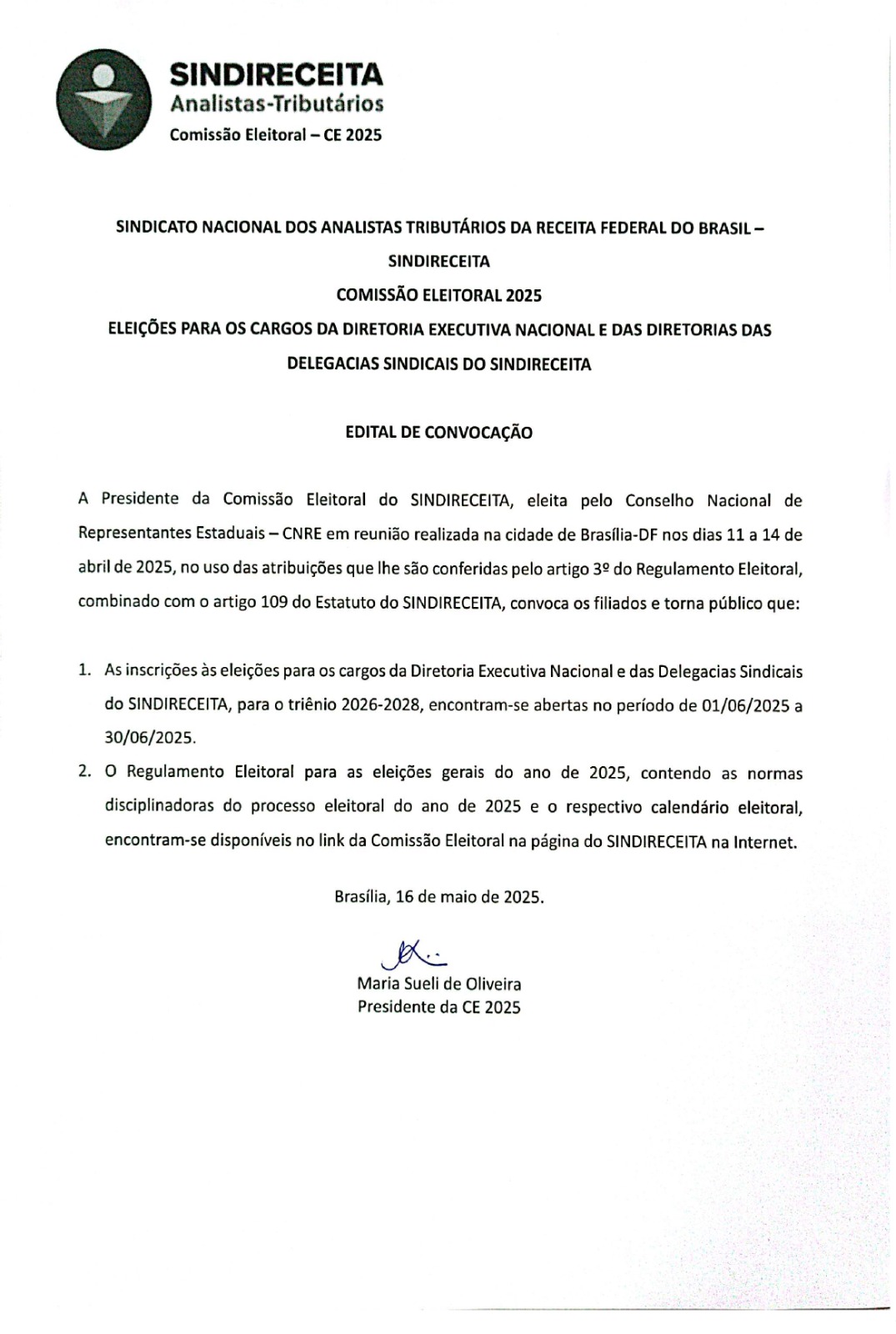 Eleições para os cargos da Diretoria Executiva Nacional e das Diretorias das Delegacias Sindicais do Sindireceita