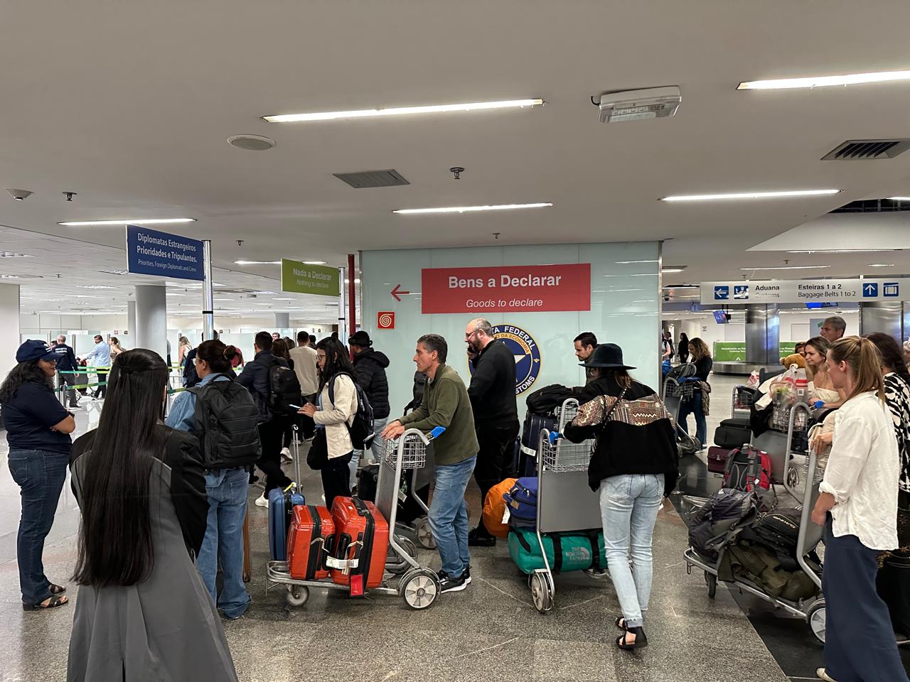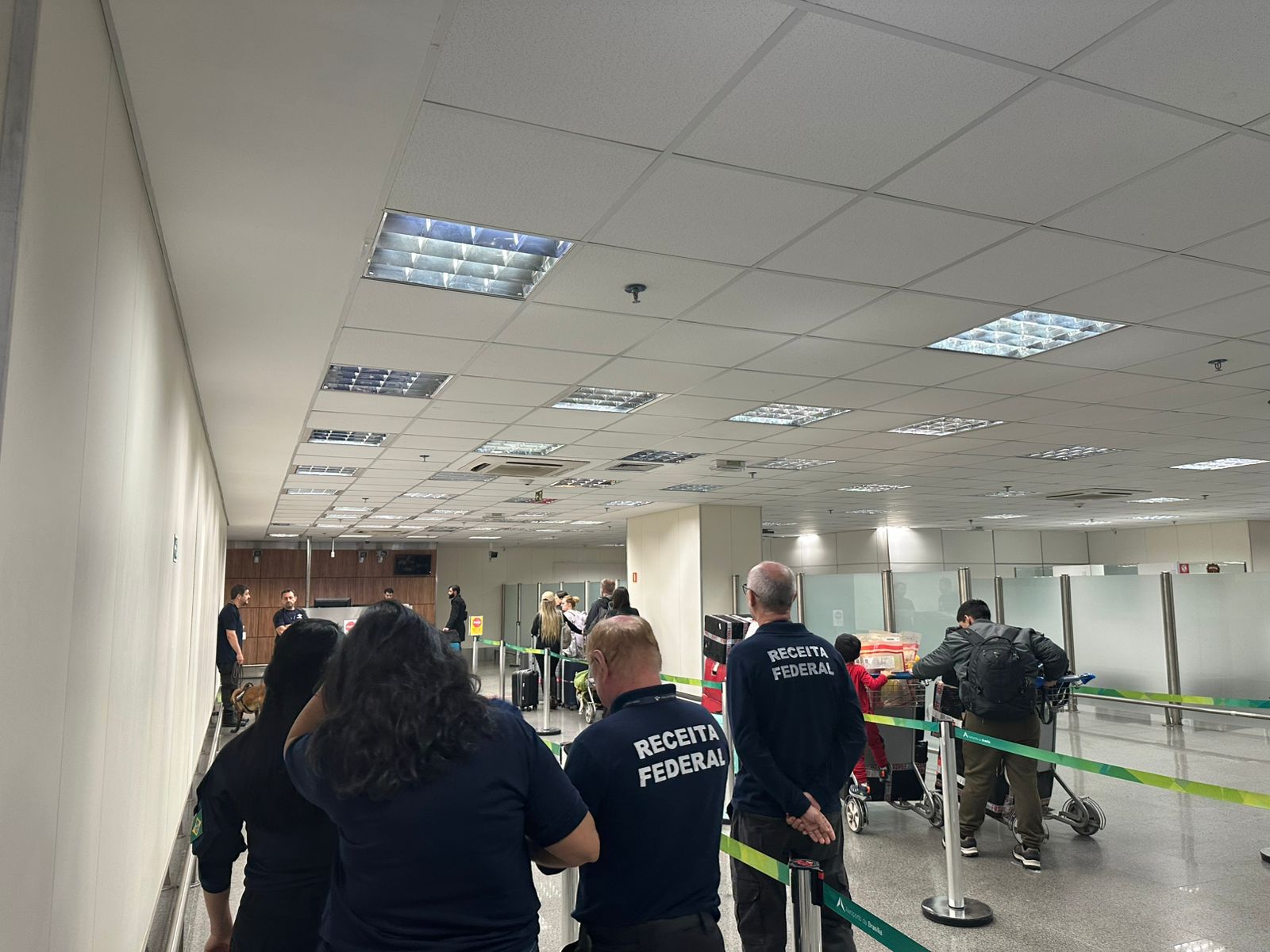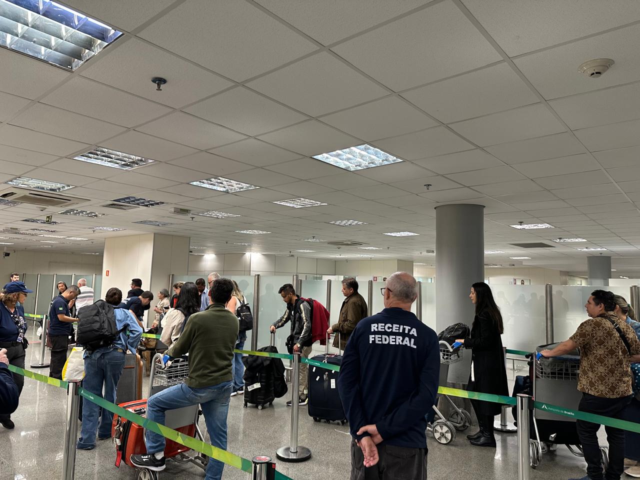 Foram realizados procedimentos de verificação de bagagens por meio de scanner, utilizados cães de faro e verificados os documentos dos passageiros que ingressaram no país.
