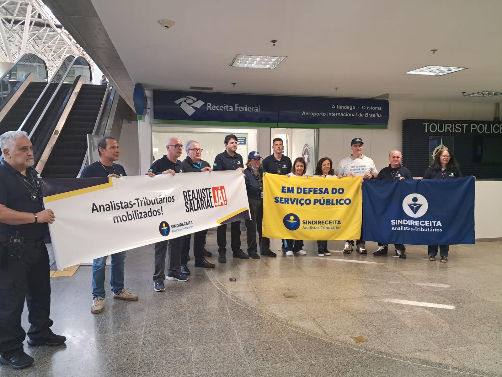 Analistas-Tributários da Receita Federal realizaram hoje, dia 22, operação padrão no Aeroporto Internacional de Brasília/DF. Os Analistas-Tributários ampliaram o controle de bagagens e passageiros que desembarcaram nesta tarde em voo procedente de Lisboa, Portugal.